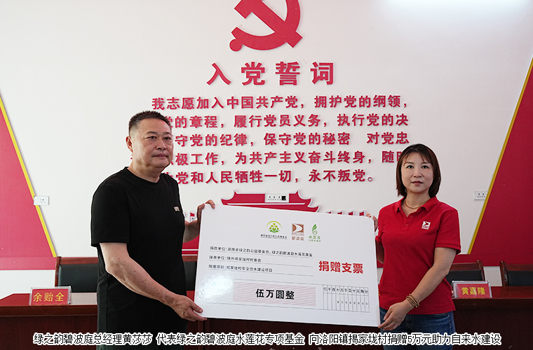 2024年6月12日,綠之韻碧波庭助力落后地區(qū)鄉(xiāng)村自來(lái)水建設(shè)暨慰問(wèn)當(dāng)?shù)乩щy群眾活動(dòng),走進(jìn)隨州市曾都區(qū)洛陽(yáng)鎮(zhèn)揭家垅村。此次公益活動(dòng),綠之韻碧波庭水蓮花專項(xiàng)基金捐贈(zèng)5萬(wàn)元善款用于自來(lái)水建設(shè),并向當(dāng)?shù)乩щy戶捐贈(zèng)愛(ài)心慰問(wèn)金和生活物資。