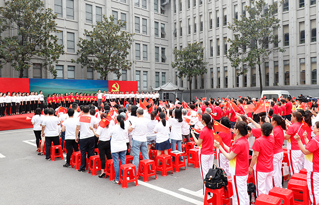新中國(guó)成立70年來,中國(guó)人民在中國(guó)共產(chǎn)黨領(lǐng)導(dǎo)下浩然前行,書寫了一部感天動(dòng)地的奮斗史詩(shī)。70年風(fēng)云激蕩,中華民族迎來了從站起來、富起來到強(qiáng)起來的偉大飛躍,正昂首闊步走在實(shí)現(xiàn)中華民族偉大復(fù)興中國(guó)夢(mèng)的征途上。歷史見證了新中國(guó)的滄桑巨變,亦承載著接續(xù)前行的寶貴經(jīng)驗(yàn)與迎接未來的光明希望。此次活動(dòng)以戶外黨課教育與紅色歌舞相結(jié)合的創(chuàng)新形式,聯(lián)動(dòng)駐地區(qū)域內(nèi)的所有黨建兄弟單位及所轄黨員、群眾,進(jìn)一步接受紅色洗禮,不忘初心跟黨走,追夢(mèng)奮進(jìn)新時(shí)代。