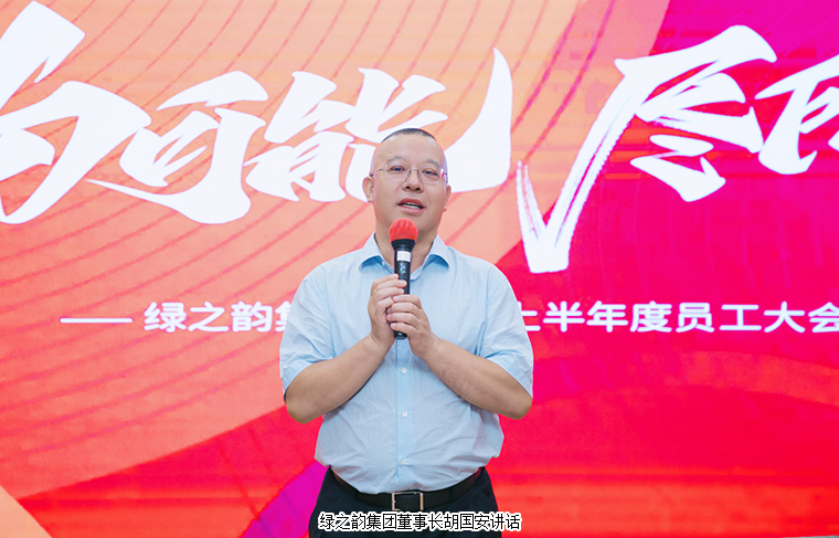 在全場(chǎng)熱烈的掌聲中,綠之韻集團(tuán)董事長(zhǎng)胡國(guó)安發(fā)表重要講話(huà)。他首先向大家分享了前段時(shí)間在長(zhǎng)沙市政協(xié)作《洞見(jiàn)的力量》書(shū)籍分享的故事。在活動(dòng)現(xiàn)場(chǎng),他與多位政府領(lǐng)導(dǎo)和企業(yè)家分享了綠之韻相較于其他企業(yè)的優(yōu)勢(shì)所在,一是綠之韻的十二大員工福利,充分保障了綠之韻基層員工的福利待遇;二是在人才培養(yǎng)方面,堅(jiān)持人才是企業(yè)的第一資源;三是在市場(chǎng)經(jīng)營(yíng)方面,集團(tuán)致力于“讓聽(tīng)得見(jiàn)炮聲的人去做決策”。每一次來(lái)到瀏陽(yáng)經(jīng)開(kāi)區(qū)工業(yè)園的時(shí)候,胡國(guó)安董事長(zhǎng)都會(huì)給綠之韻的高速路廣告牌和綠之韻公交站拍一張照,記錄下綠之韻一點(diǎn)一滴的變化。他深知,一個(gè)企業(yè)能走到第21年非常不容易,既要感謝各級(jí)政府領(lǐng)導(dǎo)的支持,也要感謝所有綠之韻人的堅(jiān)持與奮斗。他向每一個(gè)在平凡崗位上,在任何時(shí)候都積極宣傳綠之韻的企業(yè)文化、綠之韻產(chǎn)品文化,都在維護(hù)著企業(yè)形象的綠之韻人致以深深的感謝。不論在過(guò)去、現(xiàn)在、還是未來(lái),你們都是綠之韻最堅(jiān)強(qiáng)的推動(dòng)者。他希望,新入職的同事能夠盡快地融入綠之韻這個(gè)大家庭,和所有的老員工一樣傳播綠之韻的文化、維護(hù)綠之韻的形象,講好綠之韻的故事。作為一名民營(yíng)企業(yè)家,他了解創(chuàng)業(yè)的困難,更明白要堅(jiān)守一份事業(yè)是多么的不容易。今年9月份,集團(tuán)總部的提質(zhì)改造工程即將完工。明年,長(zhǎng)沙綠之韻中心項(xiàng)目將完成全面裝修。在日漸復(fù)雜的經(jīng)濟(jì)形勢(shì)下,綠之韻仍舊致力于為大家提供一個(gè)更加舒適便捷的工作環(huán)境。他會(huì)一直給予每一位綠之韻人最大的鼓勵(lì)與支持,做綠之韻人最堅(jiān)強(qiáng)的后盾。下半年的全新序幕已展開(kāi),他衷心希望,全體綠之韻人能繼續(xù)用“五心”的服務(wù)態(tài)度、精益求精的工作精神講好綠之韻的故事,譜寫(xiě)出綠之韻更加絢麗的事業(yè)篇章。