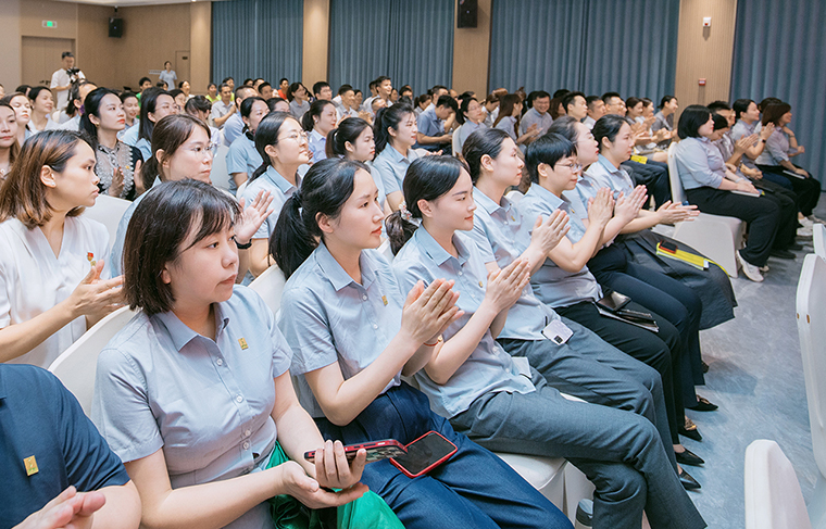 隨后,綠之韻集團(tuán)總裁勞嘉發(fā)表講話(huà)。她首先向新入職員工表示了歡迎和祝賀,向臺(tái)下各位以及奮戰(zhàn)在市場(chǎng)一線(xiàn)的各位同事致以誠(chéng)摯的感謝和崇高的敬意。本次員工大會(huì)的主題是“為可能,盡所能”。今年,是“五五規(guī)劃”的起始之年。上半年以來(lái),面對(duì)各種困難和壓力,在各市場(chǎng)的不懈奮斗下,在各業(yè)務(wù)支持部門(mén)的通力協(xié)作下,集團(tuán)公司實(shí)現(xiàn)了半年度市場(chǎng)業(yè)績(jī)的“開(kāi)門(mén)穩(wěn)”。下半年是全力沖刺年度目標(biāo)的重要節(jié)點(diǎn),也是決勝全年的關(guān)鍵點(diǎn),集團(tuán)上下要團(tuán)結(jié)一心,乘勢(shì)而上,全面奪取“全年贏”。對(duì)此,她向員工們分享了三點(diǎn)感悟:一是要始終緊緊圍繞服務(wù)一個(gè)大局——市場(chǎng)。業(yè)務(wù)支持部門(mén)要有主動(dòng)作為的精神和團(tuán)隊(duì)合作意識(shí),相互支持,相互補(bǔ)位,全面支持各市場(chǎng)的發(fā)展;業(yè)務(wù)部門(mén)要不斷調(diào)整市場(chǎng)發(fā)展策略,精準(zhǔn)定位客戶(hù)群體,以滿(mǎn)足市場(chǎng)的需求和變化,完成既定市場(chǎng)業(yè)績(jī)目標(biāo)。二要做精產(chǎn)品和服務(wù)兩個(gè)制高點(diǎn)。秉持精益求精的精神,注重細(xì)節(jié),追求卓越品質(zhì);始終堅(jiān)持“五心”服務(wù)標(biāo)準(zhǔn),讓服務(wù)成為集團(tuán)公司有口皆碑的一個(gè)招牌。三要提升三種能力:決策力、凝聚力、執(zhí)行力。決策力是企業(yè)發(fā)展的關(guān)鍵,凝聚力是團(tuán)隊(duì)的靈魂,執(zhí)行力是將決策轉(zhuǎn)化為實(shí)際成果的重要保障。最后,她用二十屆三中全會(huì)中的三句話(huà)鼓舞大家:“守正待機(jī)擔(dān)使命,厚積薄發(fā)破難題,奮楫篤行向未來(lái)。”