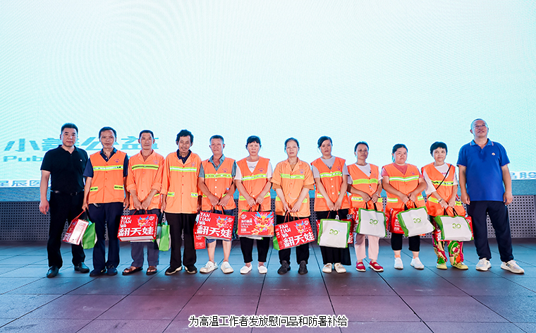 活動(dòng)現(xiàn)場為高溫工作者代表發(fā)放了慰問品和防暑補(bǔ)給,長沙市慈善事務(wù)中心副主任、長沙市慈善總會(huì)副秘書長陳飛宇,長沙市福利彩票發(fā)行中心副主任崔玲為快遞小哥、外賣騎手發(fā)放防暑補(bǔ)給;長沙市民政局慈善事業(yè)促進(jìn)處副處長董又紅,長沙市慈善事務(wù)中心主任、長沙市慈善總會(huì)秘書長周勝規(guī)為交通警察、城管隊(duì)員代表發(fā)放防暑補(bǔ)給;長沙市廣播電視臺(tái)新聞中心副主任、政法頻道、新聞綜合頻道副總監(jiān)李越強(qiáng),長沙市人大代表、湖南省慈善總會(huì)副會(huì)長、綠之韻集團(tuán)董事長胡國安為環(huán)衛(wèi)工人發(fā)放防暑補(bǔ)給。