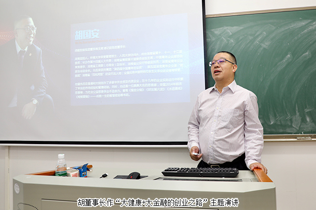 2019年6月23日,湖南師范大學客座教授、綠之韻集團董事長胡國安應湖南師范大學邀請,為“湖南師范大學第六屆MBA企業(yè)案例大賽暨全國管理案例精英賽校園突圍賽”作評委主席。并以《“大健康”+“大金融” 的創(chuàng)業(yè)之路》為主題,為湖南師范大學2018級MBA學員、金融碩士、工商管理研究生100余人帶來一場振奮人心、精彩紛呈的講座。通過分享自己真實的創(chuàng)業(yè)故事,鼓勵學員們不要因為迷茫而虛度光陰,在未來的生活中,永遠不要停止前進的腳步,不放棄最初的夢想。