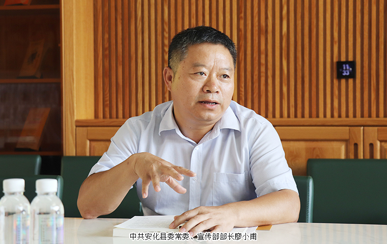 中共安化縣委常委、宣傳部部長(zhǎng)廖小甫講話。他表示,今天有幸和大家以書(shū)會(huì)友,他主要想分享三個(gè)“緣”字:一是書(shū)緣,從看到綠韻書(shū)屋的建設(shè)到閱讀胡國(guó)安董事長(zhǎng)《洞見(jiàn)的力量》一書(shū),再到感受現(xiàn)場(chǎng)每一位書(shū)友的真誠(chéng)分享,通過(guò)此次讀書(shū)會(huì)深深感受到了綠之韻的文化底蘊(yùn)和情懷溫度。二是情緣,胡國(guó)安董事長(zhǎng)一直倡導(dǎo)的“家文化”“水的精神”的企業(yè)文化,與安化梅山文化一脈相承,對(duì)企業(yè)人才的培養(yǎng)、對(duì)團(tuán)隊(duì)的創(chuàng)造、對(duì)事業(yè)的成功起著至關(guān)重要的作用。三是地緣,作為優(yōu)秀的安化籍企業(yè)家,胡國(guó)安董事長(zhǎng)不僅在企業(yè)經(jīng)營(yíng)發(fā)展上表現(xiàn)卓越,同時(shí)也積極參與社會(huì)公益慈善事業(yè),擁有極高的道德品質(zhì)和社會(huì)責(zé)任感。他用自己的親身經(jīng)歷展示出人生奮斗的真實(shí)力量,生動(dòng)地詮釋了“發(fā)展小家、報(bào)效國(guó)家”的家國(guó)情懷,傳達(dá)出奮斗的理念和拼搏的精神。正是因?yàn)橛泻芏嘞窈鷩?guó)安董事長(zhǎng)這樣杰出的人才,始終不忘家鄉(xiāng),積極為家鄉(xiāng)的建設(shè)發(fā)展貢獻(xiàn)力量,才使得我們的家鄉(xiāng)發(fā)展和鄉(xiāng)村振興建設(shè)煥發(fā)出勃勃生機(jī)。希望更多有擔(dān)當(dāng)、有情懷的企業(yè)家都可以回到安化,共同建設(shè)家鄉(xiāng),創(chuàng)造更加美好的明天。
