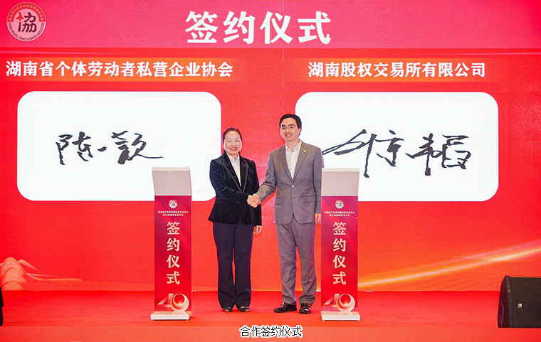 紀(jì)念大會(huì)上,省個(gè)私協(xié)會(huì)與湖南股權(quán)交易所有限公司簽署戰(zhàn)略合作協(xié)議。雙方將圍繞推動(dòng)數(shù)據(jù)互聯(lián)互通及共享應(yīng)用、共建投融資服務(wù)平臺、提供多元化融資方案、需求反饋與咨詢服務(wù)、普惠性培訓(xùn)提升、掛牌培育綠色通道、專利產(chǎn)業(yè)化專板建設(shè)、全生命周期金融服務(wù)等方面,建立定期會(huì)商機(jī)制和聯(lián)絡(luò)員制度,推動(dòng)全省個(gè)體私營經(jīng)濟(jì)的高質(zhì)量發(fā)展。大會(huì)還舉行了“湖南省個(gè)體私營經(jīng)濟(jì)新質(zhì)生產(chǎn)力發(fā)展”主旨演講,演講嘉賓從未來如何引領(lǐng)個(gè)私企業(yè)大力發(fā)展新質(zhì)生產(chǎn)力、個(gè)私企業(yè)如何以新質(zhì)生產(chǎn)力助推企業(yè)高質(zhì)量發(fā)展等方面進(jìn)行解讀。