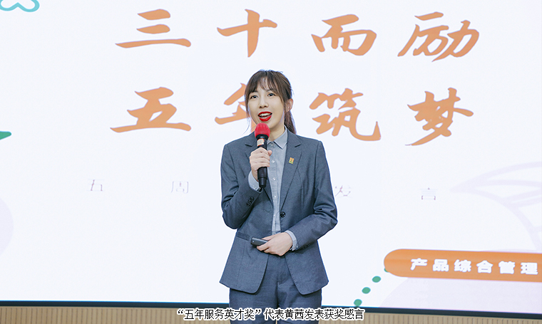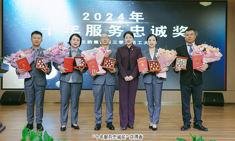 為表彰先進、樹立榜樣、激勵奮進,大會對2024年度“五年服務(wù)英才獎”、“十年服務(wù)忠誠獎”、“二十年服務(wù)功勛獎”進行了表彰,鼓勵全體員工以優(yōu)秀為標(biāo)桿,勇于追求卓越,在工作中實現(xiàn)個人價值與奮斗目標(biāo)。勞嘉總裁、胡均安常務(wù)副總裁依次為獲獎優(yōu)秀個人頒發(fā)榮譽獎杯和證書。獲獎代表王壯、黃茜發(fā)表獲獎感言,分享了他(她)們加入綠之韻的成長歷程,并表達了將始終保持積極進取的態(tài)度,珍惜榮譽、奮勇有為、不斷提升的決心。