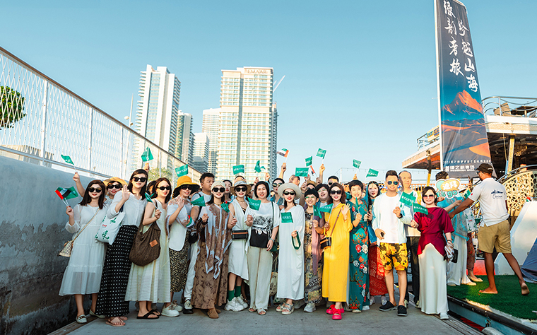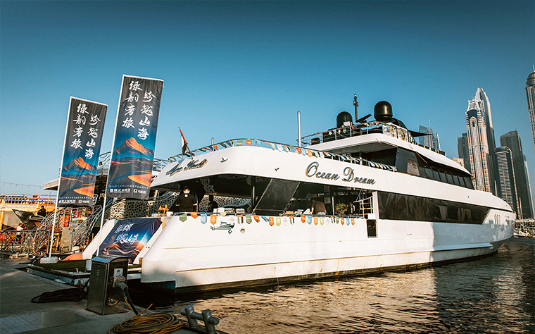 傍晚,綠之韻家人們乘坐豪華游艇置身于阿拉伯海灣的懷抱中,欣賞迪拜獨(dú)特的天際線和帆船酒店、哈利法塔等標(biāo)志性建筑。家人們?cè)谟瓮舷硎苊朗常瑲g歌縱舞,不論是白天陽(yáng)光下的湛藍(lán)海水,日落時(shí)分的金色余暉,還是夜晚華燈初上的璀璨城市,每一刻都展現(xiàn)出迪拜無(wú)與倫比的魅力。