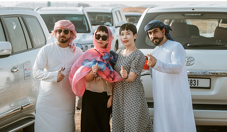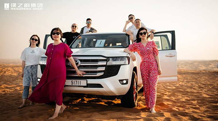 驅(qū)車遠(yuǎn)離繁華喧囂的迪拜城,走進(jìn)一半海水,一半沙漠的世界。綠之韻碧波庭家人乘坐著狂拽酷炫的四輪驅(qū)動(dòng)越野車,開(kāi)進(jìn)一望無(wú)際的沙漠,車子隨著沙丘高低起伏,在沙丘之間穿行,由下而上沖向沙丘的頂峰,來(lái)一場(chǎng)真正意義上的“速度與激情”。