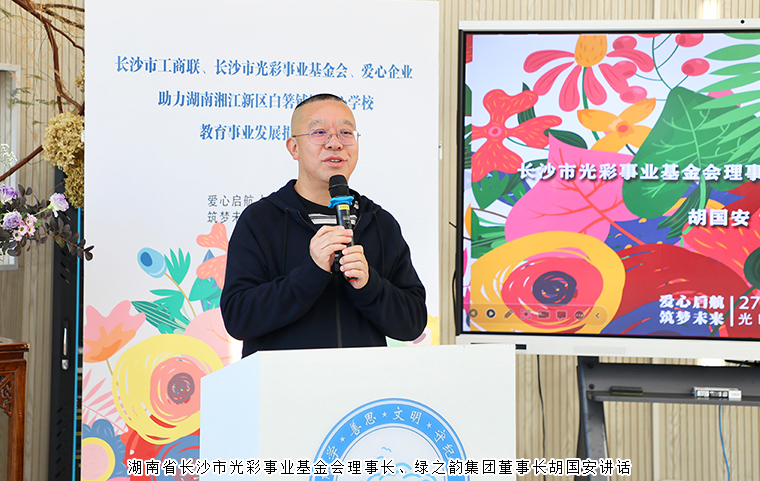 青少年是祖國(guó)的花朵,是祖國(guó)未來的希望,用愛的行為幫助他們健康成長(zhǎng),是我們作為一家企業(yè)最大的“德”。胡國(guó)安董事長(zhǎng)在講話中說道,作為湖南省長(zhǎng)沙市光彩事業(yè)基金會(huì)理事長(zhǎng),自成立以來,基金會(huì)在市委市政府的領(lǐng)導(dǎo)下,在全體理事會(huì)成員的支持下,用實(shí)際行動(dòng)踐行光彩精神,積極參與了多項(xiàng)公益事業(yè)項(xiàng)目,累計(jì)募集款物4143萬元,捐贈(zèng)款物3728萬元,為促進(jìn)省市經(jīng)濟(jì)社會(huì)發(fā)展貢獻(xiàn)了民營(yíng)經(jīng)濟(jì)力量。他表示,企業(yè)小的時(shí)候是自己的,發(fā)展壯大了就是國(guó)家的、社會(huì)的。多年來,他帶領(lǐng)企業(yè)綠之韻集團(tuán)始終堅(jiān)持弘揚(yáng)光彩精神,把公益事業(yè)提升到企業(yè)發(fā)展戰(zhàn)略高度。21年來,在全國(guó)先后援建了11所希望學(xué)校,投入300萬元開展了“綠韻圓夢(mèng)?書香助學(xué)”活動(dòng),投入1000萬元開展了“樹人行動(dòng)”,投入1000萬元成立“圓夢(mèng)”基金助力教育振興……累計(jì)捐贈(zèng)款物已達(dá)8600多萬元。他希望通過這次捐贈(zèng),能夠?yàn)楦纳茖W(xué)校的辦學(xué)條件、豐富孩子們的學(xué)習(xí)生活貢獻(xiàn)一份力量。同時(shí),他也將用行動(dòng)來呼吁,讓更多社會(huì)上的愛心力量共同來關(guān)注教育事業(yè)、關(guān)愛青少年,讓孩子們幸福快樂地成長(zhǎng)。他相信,在大家的共同努力下,白箬鋪鎮(zhèn)中心學(xué)校的明天一定會(huì)更美好!