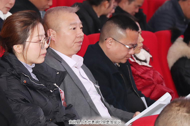安化大劇院內(nèi)氣氛莊重?zé)崃遥飨_帷幕正中的國徽在鮮艷的紅旗映襯下熠熠生輝。上午8點(diǎn)30分,大會在莊嚴(yán)的國歌聲中開幕。開幕大會由安化縣人大常委會主任陳飛燕主持。本次大會執(zhí)行主席由陳飛燕、(以下按姓氏筆畫為序)王定巖、鄧群林、石錄明、龍要平、盧映云、代虹宇、劉斌、劉百戰(zhàn)、劉建輝、李志生、李艷云、羅偉民、 胡能華、胡能新、鐘曙波、曹石多、潘文劍擔(dān)任。安化縣領(lǐng)導(dǎo)魯志堅(jiān)、李德輝、謝可贊、廖小甫、郭環(huán)球、楊正華等在主席臺就座。大會應(yīng)到代表340人,實(shí)到313人,因事因病請假27人,符合法定人數(shù)。安化縣人大代表、益陽市工商聯(lián)(總商會)副會長、綠之韻集團(tuán)常務(wù)副總裁胡均安參加大會。