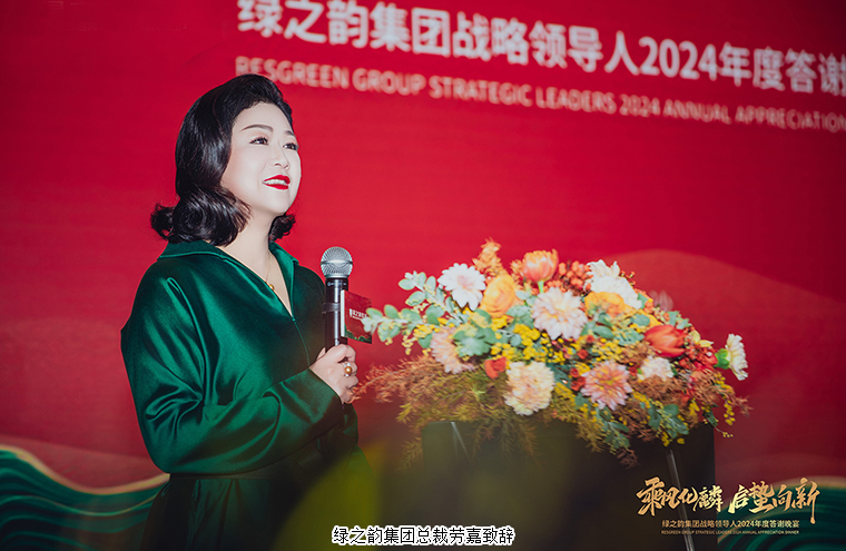 隨后,綠之韻集團總裁勞嘉致辭。她首先向蒞臨今天活動現(xiàn)場的各位領導、各位高管、各位市場領導人以及全體工作人員致以熱烈的歡迎、誠摯的感謝和親切的問候。2024年,是綠之韻集團在復雜多變的市場環(huán)境中砥礪前行、突破創(chuàng)新的一年。在胡國安董事長的帶領下,綠之韻遵循“企業(yè)發(fā)展與國家戰(zhàn)略同頻共振、自身發(fā)展與事業(yè)伙伴共贏共榮”的指導思想,正心明道,行穩(wěn)致遠,取得了一系列可喜的成績。綠之韻的發(fā)展離不開國家政策的支持,離不開行業(yè)的規(guī)范健康發(fā)展,離不開在座各位的齊心協(xié)力。剛剛召開的中央經(jīng)濟工作會議,明確提出:“要從制度和法律上把對國企民企平等對待的要求落下來,從政策和輿論上鼓勵支持民營經(jīng)濟和民營企業(yè)發(fā)展壯大,依法保護民營企業(yè)產(chǎn)權(quán)和企業(yè)家權(quán)益。”今年5月份,國務院已將“兩個條例”納入了立法預備修訂計劃。這些政策利好、行業(yè)利好,都為我們未來的發(fā)展注入了強勁的動力和信心。她相信,在各級領導的指導和支持下,在胡國安董事長的帶領下,在全體事業(yè)伙伴們和員工的共同努力下,打開了新篇章的綠之韻,一定會在這個充滿變革和機遇的美好時代,創(chuàng)造出更加輝煌的未來。我們始終要相信趨勢的力量,相信規(guī)律的力量,相信信仰的力量,相信相信的力量。