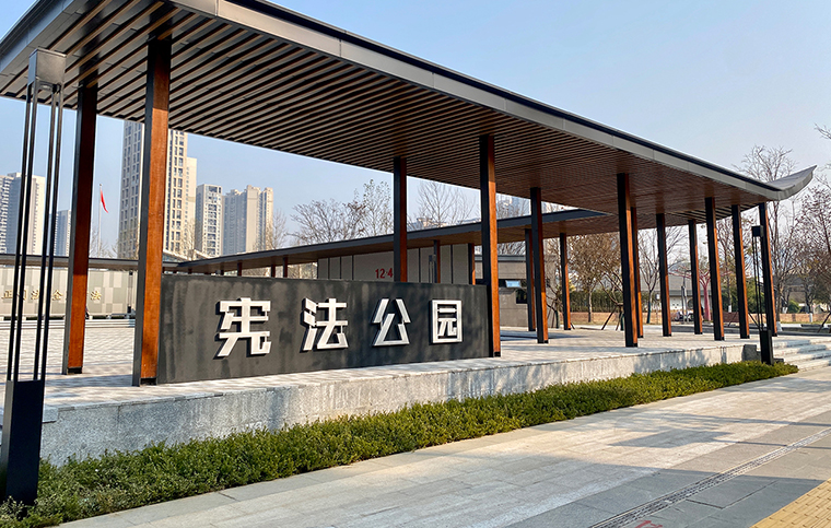 據(jù)了解,圭塘河憲法公園由湖南省人大常委會、長沙市人大常委會和雨花區(qū)共同建設,于2023年12月動工,歷時一年建成開放,是湖南省首個功能齊全、規(guī)模最大的憲法主題公園。公園位于長沙市雨花區(qū)圭塘河畔,由市民廣場區(qū)、憲法宣誓儀式區(qū)、憲法宣傳教育展示區(qū)、法治實踐互動區(qū)4個部分組成,占地約3.6萬平方米,建筑面積約1900平方米,是一個面向市民進行憲法宣傳教育、開展禮敬憲法活動的法治文化平臺,是全省宣傳習近平法治思想,弘揚憲法、尊崇憲法的法治文化新地標。