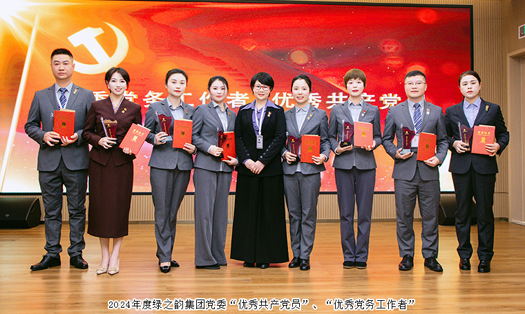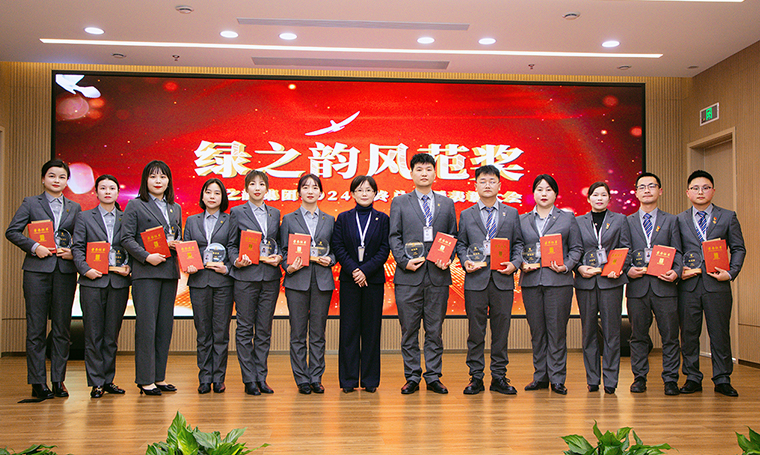 他(她)們宛如深植厚土的勁柏,于崗位之上篤定堅守,在時光的砥礪中淬煉出超凡本領;他(她)們緊緊追隨領導的思想旗幟,以無畏的勇氣和不懈的努力,奮力揮毫書寫著綠之韻的宏偉發(fā)展篇章。在備受矚目的頒獎環(huán)節(jié),綠之韻集團總裁勞嘉為2024年度“優(yōu)秀管理者”頒發(fā)榮譽;常務副總裁胡均安、副總裁劉淑娟、副總裁夏運良為2024年度“綠之韻風范獎”頒發(fā)榮譽;市場營銷中心總經理戴三省為2024年度“綠之韻服務能手”頒發(fā)榮譽;黨委書記劉云分別為2024年度綠之韻集團黨委“先進基層黨組織”“最具創(chuàng)意主題黨日活動”“優(yōu)秀黨務工作者”“優(yōu)秀共產黨員”頒發(fā)榮譽;常務副總經理梅其慧為2024年度“最佳新人獎”“優(yōu)秀指導老師”頒發(fā)榮譽。