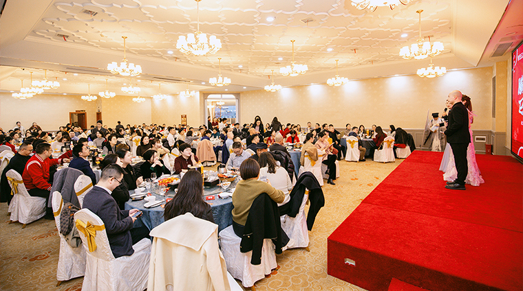 隨后,螣螣前程 巳巳如意——2024年新春團拜會啟幕,瞬間點燃全場激情。舞臺上,舞者似靈動精靈,舞步輕盈,踏響新年節(jié)拍;靈魂歌手一展天籟,歌聲悠揚,唱響新春樂章;創(chuàng)意小品,奇思妙想;財神舞,喜氣洋洋燃爆全場;抽獎環(huán)節(jié)更是將全場氛圍一次次推向高潮,歡呼聲與祝福聲交織,驚喜與歡樂在會場四處綻放,每一個綠之韻人沉浸其中,其樂融融。最后,全體綠之韻家人舉杯同慶,在這熱鬧非凡的氛圍中,共同憧憬新一年的輝煌。