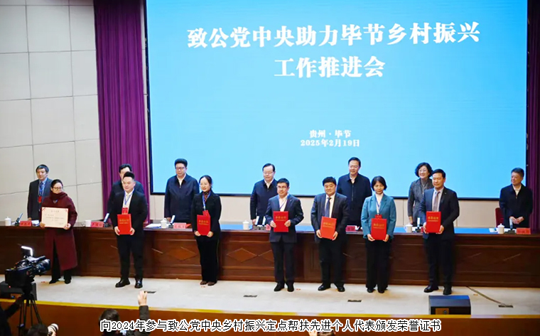 2024年,全國(guó)各級(jí)組織和廣大黨員在定點(diǎn)幫扶七星關(guān)區(qū)和統(tǒng)一戰(zhàn)線“地域+領(lǐng)域”組團(tuán)式幫扶畢節(jié)工作中取得一系列成果,涌現(xiàn)出一批先進(jìn)集體和先進(jìn)個(gè)人,充分展示了致公黨的優(yōu)良傳統(tǒng)和擔(dān)當(dāng)作為,不斷提升致公黨的社會(huì)影響力。會(huì)議表彰了2024年參與致公黨中央鄉(xiāng)村振興定點(diǎn)幫扶先進(jìn)集體和先進(jìn)個(gè)人。長(zhǎng)沙市人大代表、致公黨湖南省委會(huì)“數(shù)字互聯(lián)”委員會(huì)名譽(yù)主任、綠之韻集團(tuán)董事長(zhǎng)胡國(guó)安榮獲“2024年度致公黨中央鄉(xiāng)村振興定點(diǎn)幫扶先進(jìn)個(gè)人”榮譽(yù)稱號(hào)。