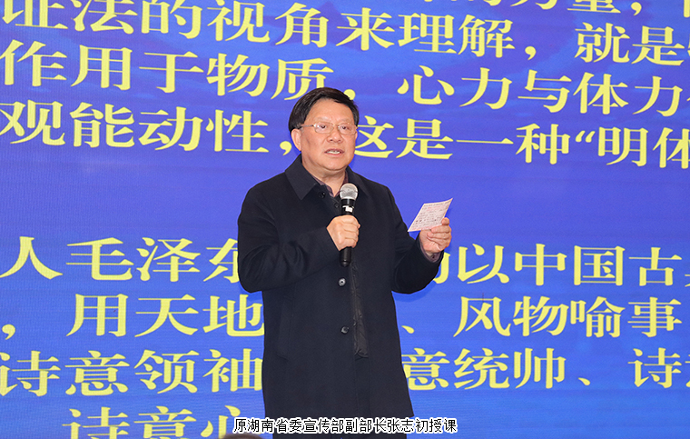 此次研討會,特邀原湖南省委宣傳部副部長張志初為與會人員帶來了一場關(guān)于毛學(xué)的精彩講授。張志初先生身兼太和智庫高級研究員、中國毛澤東詩詞研究會副會長等諸多重要職務(wù),在毛澤東思想研究領(lǐng)域造詣深厚,經(jīng)驗(yàn)頗豐。此次講授中,他憑借其深厚的學(xué)術(shù)功底與獨(dú)到的見解,對毛澤東思想進(jìn)行了鞭辟入里的解讀。綠之韻碧波庭的精英們對偉人的思想有了更為透徹的領(lǐng)悟,同時也為今后的工作開展與事業(yè)發(fā)展找到了更為堅實(shí)的精神燈塔和理論基石,汲取了強(qiáng)大的奮進(jìn)力量。