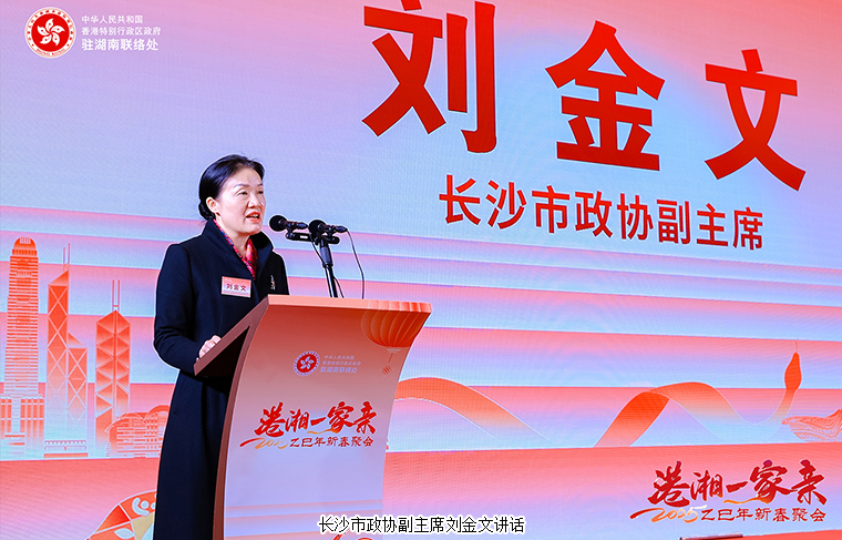 長(zhǎng)沙市政協(xié)副主席劉金文在致辭中表示,過去一年,在中央領(lǐng)導(dǎo)及“一國(guó)兩制”指引下,香港保持穩(wěn)定,在國(guó)際舞臺(tái)彰顯魅力;長(zhǎng)沙在市委市政府領(lǐng)導(dǎo)下,全球經(jīng)濟(jì)城市建設(shè)穩(wěn)步推進(jìn),營(yíng)商環(huán)境、幸福感城市排名亮眼。此新春晚會(huì)已舉辦六屆,體現(xiàn)兩地密切聯(lián)系,越來越多港人港企來長(zhǎng)沙發(fā)展。2025年是蛇年,也是機(jī)遇與挑戰(zhàn)并存的一年,隨著“一帶一路”、粵港澳大灣區(qū)建設(shè)等戰(zhàn)略深入實(shí)施,長(zhǎng)沙與香港迎來新機(jī)遇。長(zhǎng)沙作為長(zhǎng)江中游中心城市,產(chǎn)業(yè)、創(chuàng)新資源豐富,香港是國(guó)際金融、貿(mào)易和航運(yùn)中心,兩地優(yōu)勢(shì)互補(bǔ)潛力巨大。我們堅(jiān)信,只要攜手深化合作,就一定能夠在新時(shí)代的浪潮中共創(chuàng)輝煌。