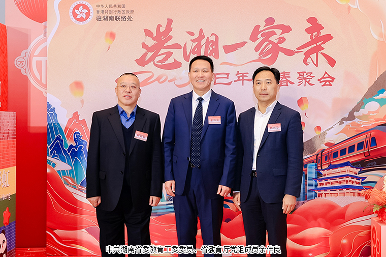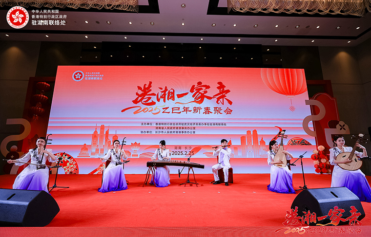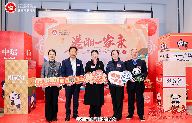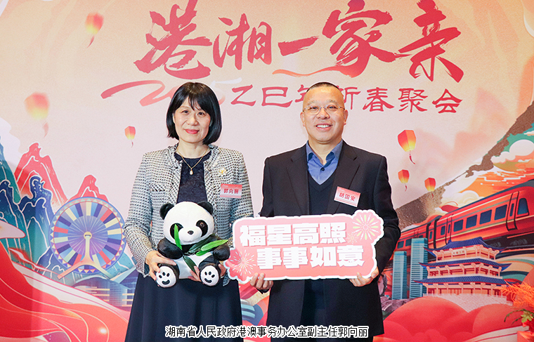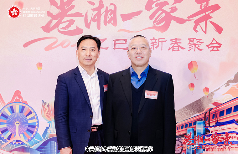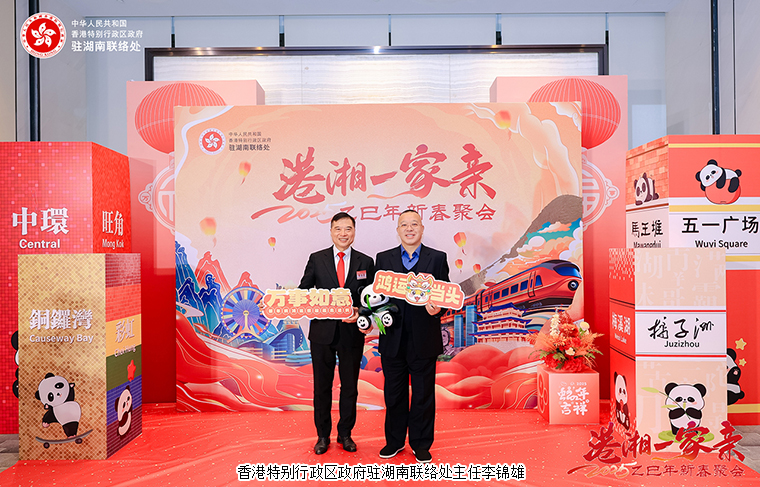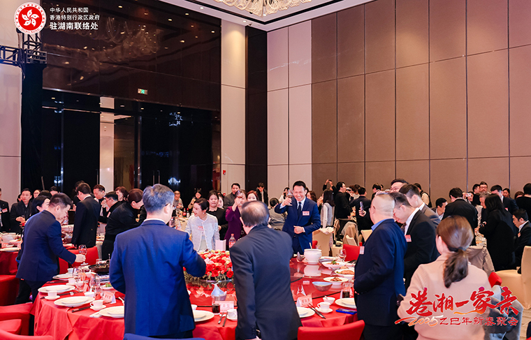 2025年2月25日,由香港特別行政區(qū)政府駐武漢經(jīng)濟(jì)貿(mào)易辦事處駐湖南聯(lián)絡(luò)處與湖南省人民政府港澳事務(wù)辦公室舉辦的“港湘一家親2025新春聚會(huì)”在湖南長(zhǎng)沙市成功舉辦。香港特別行政區(qū)政府駐武漢經(jīng)濟(jì)貿(mào)易辦事處主任蔡敏君;中共湖南省委統(tǒng)戰(zhàn)部副部長(zhǎng)、省政府僑辦主任劉衛(wèi)兵,湖南省人民政府港澳事務(wù)辦公室副主任郭向麗,中共湖南省委教育工委委員、省教育廳黨組成員余偉良,湖南省科技廳黨組成員、副廳長(zhǎng)佟來,湖南省公安廳黨委委員、副廳長(zhǎng)余良勇,湖南省出入境邊防檢查總站副總站長(zhǎng)丁莉,湖南省商務(wù)廳黨組成員、副廳長(zhǎng)劉素月,湖南省文旅廳黨組成員、副廳長(zhǎng)龔鐵軍,中共湖南省委統(tǒng)戰(zhàn)部港澳臺(tái)處處長(zhǎng)梁良,湖南省人民政府港澳事務(wù)辦公室港澳處處長(zhǎng)黎沖;香港特別行政區(qū)政府駐湖南聯(lián)絡(luò)處主任李錦雄;長(zhǎng)沙市政協(xié)副主席劉金文,中共長(zhǎng)沙市委統(tǒng)戰(zhàn)部副部長(zhǎng)、市僑辦主任楊光華,中共長(zhǎng)沙市委統(tǒng)戰(zhàn)部港澳處處長(zhǎng)趙敏等領(lǐng)導(dǎo)出席。香港湖南聯(lián)誼總會(huì)常務(wù)副會(huì)長(zhǎng)、香港長(zhǎng)沙聯(lián)誼會(huì)會(huì)長(zhǎng)、綠之韻集團(tuán)董事長(zhǎng)胡國(guó)安與在湘港人和港資企業(yè)代表等近200名來賓共聚一堂同賀新春。