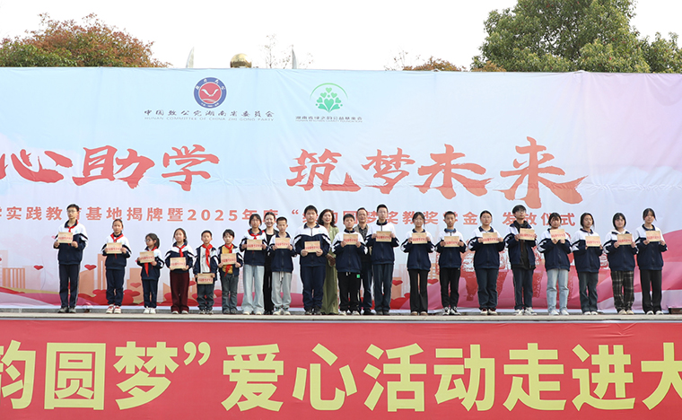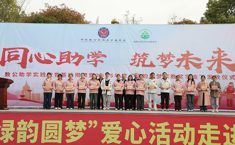 為營(yíng)造濃厚的關(guān)心人才、尊重人才、支持人才以及愛(ài)學(xué)、勤學(xué)、好學(xué)、比學(xué)的濃厚氛圍,2023年,致公黨湖南省委會(huì)、湖南省綠之韻公益基金會(huì)“綠韻圓夢(mèng)行動(dòng)”捐贈(zèng)50萬(wàn)元愛(ài)心資金用于在安化大橋?qū)W校設(shè)立“獎(jiǎng)教獎(jiǎng)學(xué)金”,支持鄉(xiāng)村振興文化建設(shè)和教育事業(yè)發(fā)展。4月2日,致公助學(xué)實(shí)踐教育基地揭牌暨2025年度“綠韻圓夢(mèng)獎(jiǎng)教獎(jiǎng)學(xué)金”發(fā)放儀式再次走進(jìn)安化縣冷市鎮(zhèn)大橋?qū)W校,為鄉(xiāng)村教育注入了新的活力。