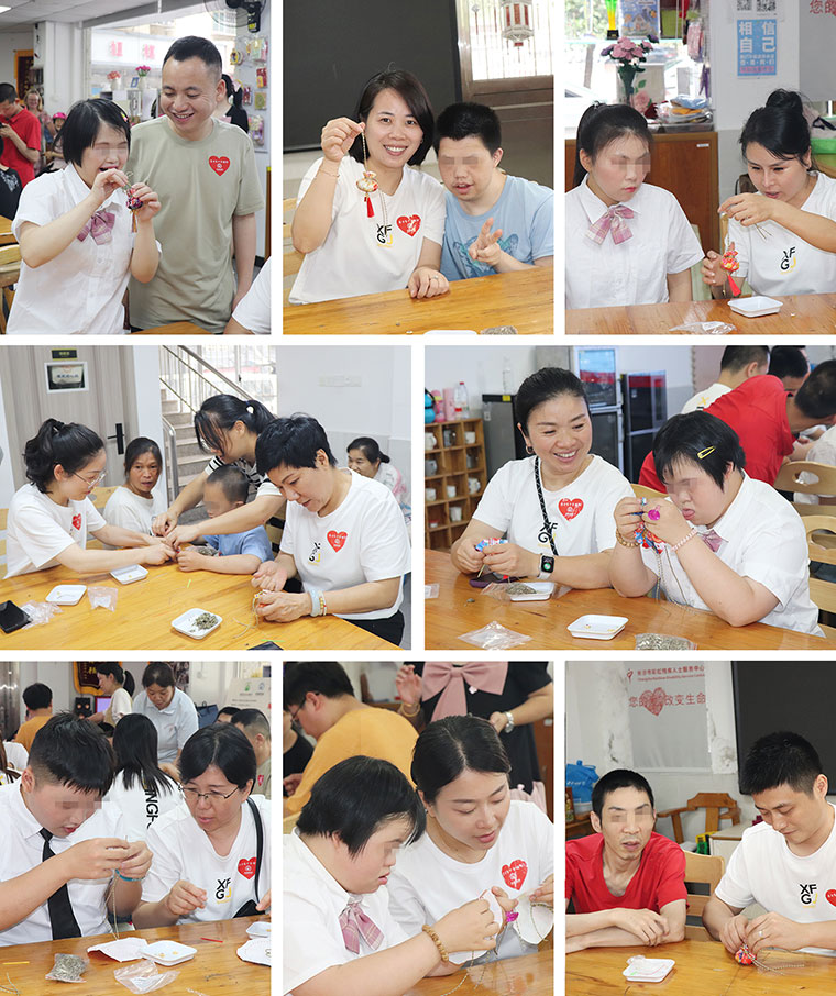 在晨光中心,有一支專(zhuān)門(mén)為殘障青年就業(yè)提供服務(wù)的團(tuán)隊(duì),老師們根據(jù)每個(gè)青年人的能力制定培養(yǎng)計(jì)劃,在輔助性就業(yè)、支持性就業(yè)和外出就業(yè)等方面提供專(zhuān)業(yè)幫助,目前團(tuán)隊(duì)已為32名青年提供家庭評(píng)估,20余名青年在手工品制作、美食烹飪、音樂(lè)世界等方面不斷挖掘自己的潛力。捐贈(zèng)儀式后,綠之韻幸福國(guó)際愛(ài)心志愿者們與孩子們一起動(dòng)手制作艾草包,并現(xiàn)場(chǎng)購(gòu)買(mǎi)殘障青年們手工制作品,讓他們的勞動(dòng)成果實(shí)現(xiàn)了價(jià)值的轉(zhuǎn)變。在歡聲笑語(yǔ)中,艾草的清香與溫暖的情誼交織,讓這個(gè)午后格外溫馨。