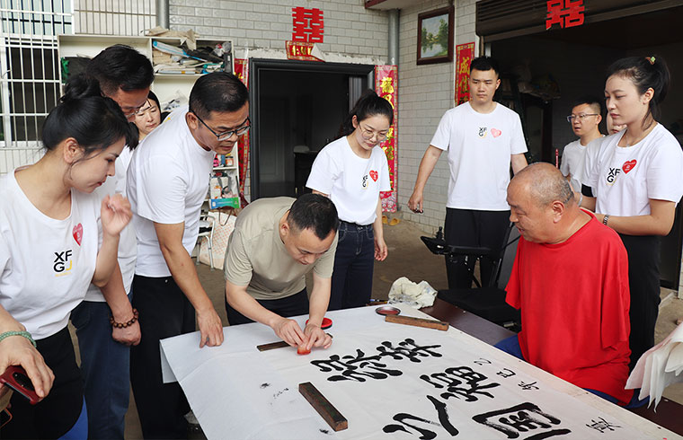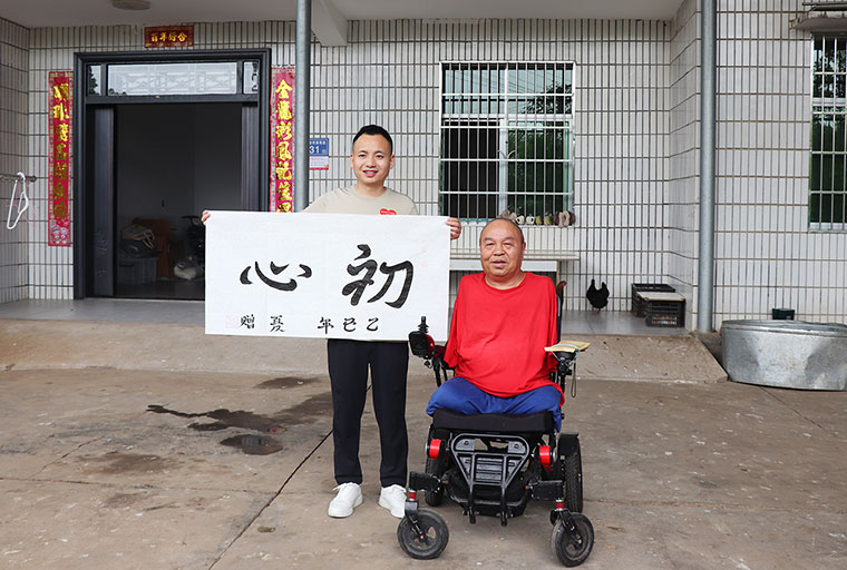 活動(dòng)當(dāng)天,綠之韻幸福國(guó)際愛(ài)心志愿者一行還前往四肢殘缺的畫(huà)家周?chē)?guó)民及農(nóng)村殘疾青年家庭進(jìn)行走訪(fǎng)慰問(wèn),送去暖心物資及愛(ài)心慰問(wèn)金。四肢殘缺的畫(huà)家周?chē)?guó)民在夏總及愛(ài)心志愿者的幫助下?lián)]毫潑墨,寫(xiě)下了《初心》《綠之韻幸福國(guó)際》的書(shū)法作品。我們相信,命運(yùn)奪走了他的部分軀體,愛(ài)讓他的人生不再殘缺。