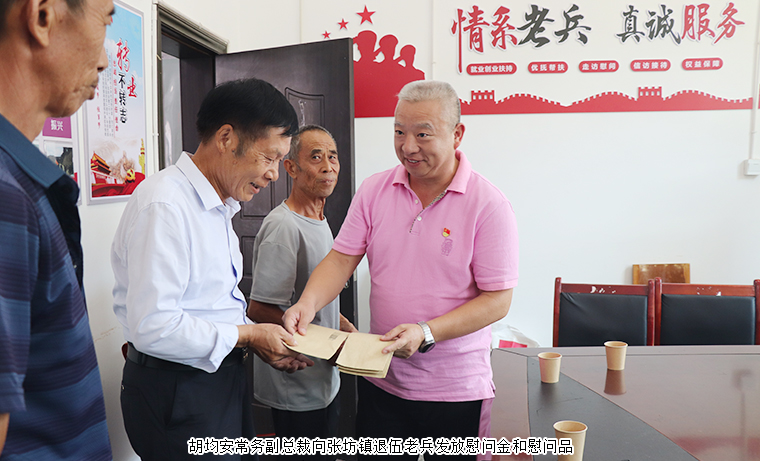 隨后,綠之韻一行前往張坊鎮(zhèn),繼續(xù)走訪慰問(wèn)當(dāng)?shù)仄渌宋槔媳私馑麄兊纳顮顩r和需求,傳遞組織的關(guān)懷。座談會(huì)上,綠之韻集團(tuán)黨委書(shū)記劉云首先代表綠之韻集團(tuán)向張坊鎮(zhèn)、小河鄉(xiāng)為國(guó)家國(guó)防事業(yè)做出貢獻(xiàn)的軍屬、老兵們致以崇高敬意和節(jié)日祝福。劉云書(shū)記深情回顧了綠之韻集團(tuán)與軍人、與瀏陽(yáng)這片熱土深厚的三重“情緣”:第一重情是擁軍慰問(wèn)情。一直以來(lái),胡國(guó)安董事長(zhǎng)堅(jiān)持在每年“八一”建軍節(jié)組織開(kāi)展走訪慰問(wèn)退伍軍人活動(dòng)。這份對(duì)軍人的深情厚誼已成為綠之韻的一個(gè)傳統(tǒng)。第二重情是尊軍用軍情。綠之韻集團(tuán)一直對(duì)軍人懷有深厚的感恩之情。集團(tuán)歷來(lái)優(yōu)先聘用優(yōu)秀的退伍軍人作為集團(tuán)的骨干力量,為這些曾為國(guó)防做出貢獻(xiàn)的軍人提供發(fā)揮才干的舞臺(tái)。第三重情是幫扶共建情。從過(guò)去的精準(zhǔn)扶貧、到鄉(xiāng)村振興再到現(xiàn)在的持續(xù)幫扶,綠之韻與小河鄉(xiāng)有著長(zhǎng)期深厚的情誼。正是這份深厚的情誼,促使集團(tuán)今年“八一”特意來(lái)到小河鄉(xiāng)、張坊鎮(zhèn)進(jìn)行慰問(wèn)。未來(lái),綠之韻集團(tuán)黨委將繼續(xù)秉承這份“情緣”,一如既往地關(guān)心支持退伍軍人的生活與發(fā)展,積極履行企業(yè)社會(huì)責(zé)任,為瀏陽(yáng)這片熱土繼續(xù)貢獻(xiàn)企業(yè)力量。