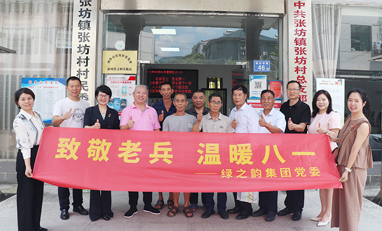 為熱烈慶祝中國(guó)人民解放軍建軍98周年,2025年8月1日,綠之韻集團(tuán)黨委走進(jìn)瀏陽(yáng)市張坊鎮(zhèn)、小河鄉(xiāng)組織開(kāi)展“致敬老兵,溫暖八一”主題黨日活動(dòng)。綠之韻集團(tuán)黨委書(shū)記劉云,黨委委員、常務(wù)副總裁胡均安,黨委副書(shū)記許達(dá)仲,黨委委員陳建新、楊丹與瀏陽(yáng)市工商聯(lián)黨組成員、副主席雷建軍以及小河鄉(xiāng)、張坊鎮(zhèn)有關(guān)負(fù)責(zé)人一起,為當(dāng)?shù)赝宋檐娙怂蜕衔繂?wèn)金和濃濃的節(jié)日祝福。