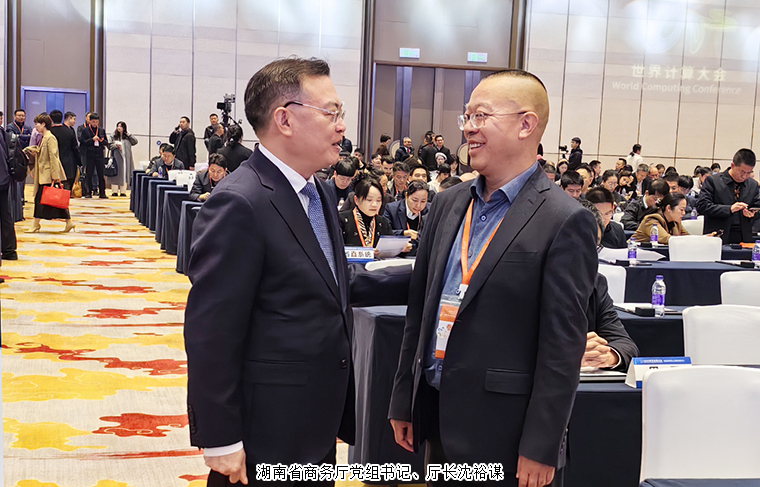 會議期間,綠之韻集團董事長胡國安同省市領(lǐng)導(dǎo)、部分嘉賓進行了親切交流。“非常榮幸能夠受邀參會。本次大會,不僅是一場數(shù)字技術(shù)的盛會,更是一次湖南數(shù)字經(jīng)濟發(fā)展成果的集中展示,讓我深感振奮與自豪。”他表示,當(dāng)前湖南正處于數(shù)字化轉(zhuǎn)型、產(chǎn)業(yè)升級的重要歷史時期,2025世界計算大會的召開,為湖南數(shù)字經(jīng)濟創(chuàng)新發(fā)展注入了新的動力。作為扎根湖南發(fā)展的企業(yè),綠之韻集團始終緊盯數(shù)字技術(shù)與實體經(jīng)濟融合的發(fā)展機遇,深知企業(yè)在產(chǎn)業(yè)數(shù)字化進程中的責(zé)任與使命。此次參會,既感受到了湖南數(shù)字經(jīng)濟的蓬勃活力,更堅定了集團深耕數(shù)字轉(zhuǎn)型、助力產(chǎn)業(yè)升級的決心。相信在省委、省政府的堅強領(lǐng)導(dǎo)下,隨著數(shù)字經(jīng)濟與實體經(jīng)濟的深度融合,湖南數(shù)字產(chǎn)業(yè)品牌必將在世界舞臺上綻放更加耀眼的光芒,也必將為企業(yè)高質(zhì)量發(fā)展提供更廣闊的空間。