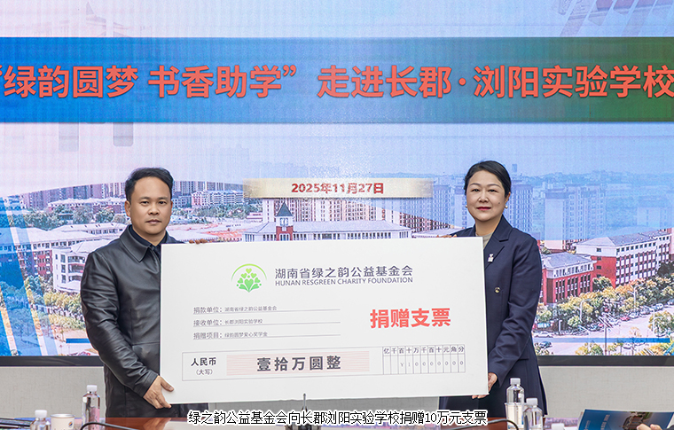 為積極響應(yīng)國家鄉(xiāng)村振興戰(zhàn)略,營造愛學、勤學、好學、比學的濃厚氛圍,2024年,湖南省綠之韻公益基金會通過“綠韻圓夢·書香助學”項目捐贈30萬元愛心資金,專項用于長郡瀏陽實驗學校助學項目。2025年11月27日, “綠韻圓夢·書香助學”活動再次走進該校為優(yōu)秀學子頒發(fā)助學金,以公益力量助力鄉(xiāng)村振興背景下的文化建設(shè)與教育事業(yè)發(fā)展,為瀏陽市教育城鄉(xiāng)一體化進程注入溫暖動能。