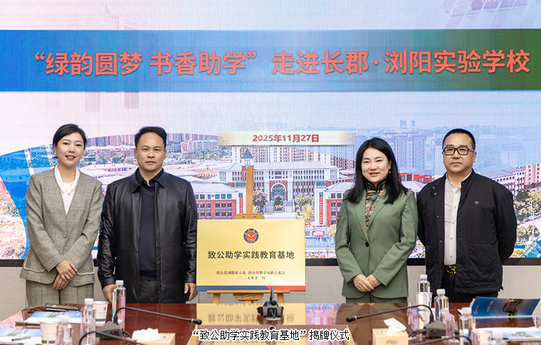 冬日暖陽照校園,愛心助學暖人心。在與會嘉賓的共同見證下,勞嘉理事長代表綠之韻公益基金會向長郡瀏陽實驗學校捐贈10萬元支票。肖校長代表學校接收捐贈,并向綠之韻回贈了飽含感激之情的愛心錦旗。隨后,致公黨瀏陽市工委、致公黨數(shù)字互聯(lián)專委會、綠之韻公益基金會、長郡瀏陽實驗學校代表共同為“致公助學實踐教育基地”揭牌,隨著牌匾的緩緩亮相,標志著綠之韻與長郡瀏陽實驗學校在公益助學、實踐育人領(lǐng)域的合作正式落地,未來將攜手為青少年搭建更廣闊的成長平臺,讓愛心在教育實踐中持續(xù)傳遞。