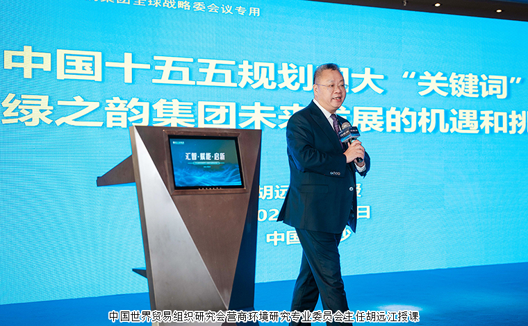 在時(shí)代浪潮奔涌向前的新征程上,唯有錨定國(guó)家戰(zhàn)略航向、行業(yè)發(fā)展趨勢(shì),才能把握發(fā)展先機(jī)。會(huì)上,綠之韻集團(tuán)企業(yè)戰(zhàn)略發(fā)展顧問(wèn)、中國(guó)世界貿(mào)易組織研究會(huì)營(yíng)商環(huán)境研究專業(yè)委員會(huì)主任胡遠(yuǎn)江授課。他以專業(yè)視角深度拆解國(guó)家“十五五”規(guī)劃四大關(guān)鍵詞,系統(tǒng)剖析了規(guī)劃背后蘊(yùn)藏的產(chǎn)業(yè)機(jī)遇與行業(yè)挑戰(zhàn),精準(zhǔn)對(duì)接綠之韻集團(tuán)的戰(zhàn)略根基與發(fā)展?jié)摿ΑK岢觯^續(xù)以高質(zhì)量發(fā)展為引領(lǐng),構(gòu)建新發(fā)展格局,培育世界競(jìng)爭(zhēng)力;以創(chuàng)新驅(qū)動(dòng)為核心,提升企業(yè)創(chuàng)新能力,強(qiáng)化科技自立自強(qiáng);以綠色發(fā)展為路徑,加快發(fā)展方式轉(zhuǎn)型,踐行綠色低碳理念;以共同富裕為目標(biāo),實(shí)施創(chuàng)業(yè)優(yōu)先戰(zhàn)略,賦能創(chuàng)業(yè)者成長(zhǎng)。國(guó)家市場(chǎng)監(jiān)管總局課題組專家、北大EMBA總裁班特聘教授李征,國(guó)家市場(chǎng)監(jiān)管總局行政學(xué)院特邀講師苑芳軍帶來(lái)主題分享。精彩的分享令在場(chǎng)家人們深受啟發(fā)、倍感振奮。