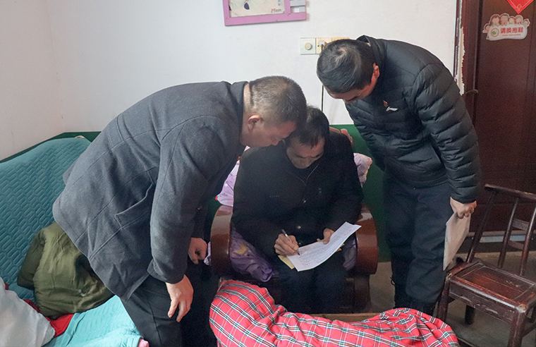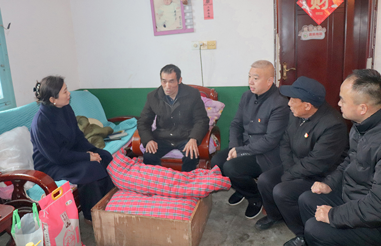 在南園村,62歲的退役軍人陳友根身患多種重病,醫(yī)療開支讓整個八口之家步履維艱。大兒子一家打工維生,小兒子夫妻均為重度殘疾人,還有一個幼子需要照料。生活的重?fù)?dān)沒有壓垮這家人相互扶持的信念。蔣文秘書長與陳友根并肩而坐,詳細(xì)了解他身體醫(yī)療情況與家庭需求。“困難是暫時的,我們和您一起想辦法。”真誠的交流,如親人般的關(guān)懷,為他們注入了向前走的力量。