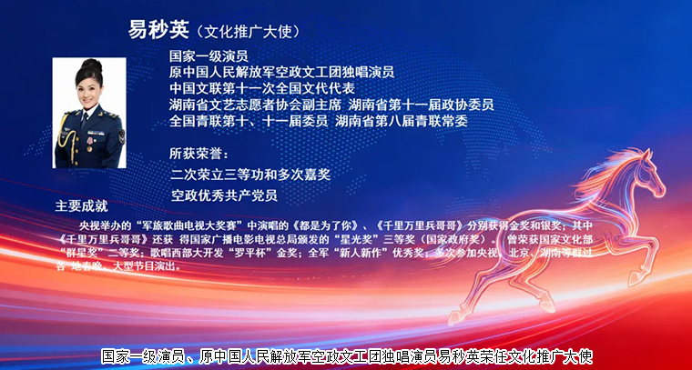 國(guó)家一級(jí)演員、原中國(guó)人民解放軍空政文工團(tuán)獨(dú)唱演員易秒英榮任文化推廣大使