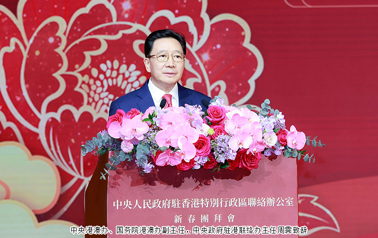 中央港澳辦、國務(wù)院港澳辦副主任,中央政府駐港聯(lián)絡(luò)辦主任周霽作了題為《同舟共濟(jì)譜華章 策馬揚(yáng)鞭啟新程》的致辭。周霽表示,過去一年,在以習(xí)近平同志為核心的黨中央堅(jiān)強(qiáng)領(lǐng)導(dǎo)下,國家各項(xiàng)事業(yè)取得新的歷史性成就。“十四五”圓滿收官,我國經(jīng)濟(jì)總量突破140萬億元,經(jīng)濟(jì)實(shí)力、科技實(shí)力、國防實(shí)力、綜合國力躍上新臺階。中共二十屆四中全會擘畫高質(zhì)量發(fā)展新藍(lán)圖,中國式現(xiàn)代化的巨輪乘風(fēng)破浪、揚(yáng)帆遠(yuǎn)航。習(xí)近平主席一直牽掛著香港發(fā)展和市民福祉,強(qiáng)調(diào)支持香港更好融入和服務(wù)國家發(fā)展大局,指引香港由治及興邁出新步伐。這一年,香港堅(jiān)決維護(hù)國家主權(quán)、安全、發(fā)展利益,社會保持和諧穩(wěn)定,經(jīng)濟(jì)發(fā)展持續(xù)向好,民生不斷改善,一系列盛事、“峰會”成功舉辦,國際調(diào)解院在港揭牌運(yùn)行,香港蟬聯(lián)全球最自由經(jīng)濟(jì)體,世界競爭力、金融中心指數(shù)、世界人才排名位列前茅,五所高校穩(wěn)居世界百強(qiáng)。東方之珠正煥發(fā)出更加璀璨奪目的光彩。他進(jìn)一步表示,新的一年,中央政府駐港聯(lián)絡(luò)辦將繼續(xù)全面準(zhǔn)確、堅(jiān)定不移貫徹“一國兩制”方針,繼續(xù)全力支持李家超行政長官和特區(qū)政府依法施政,全力支持服務(wù)香港實(shí)現(xiàn)更好發(fā)展,為以中國式現(xiàn)代化推進(jìn)強(qiáng)國建設(shè)、民族復(fù)興偉業(yè)作出更大貢獻(xiàn)。