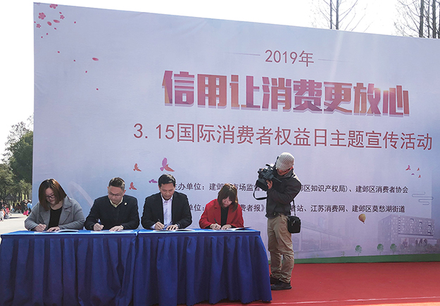 2019年3月14日,由南京市建鄴區(qū)市場監(jiān)管局、消費者協(xié)會等聯(lián)合主辦的3·15消費者日主題活動在莫愁湖南門口的和平廣場舉行。綠之韻集團江蘇分公司參加本次活動,分公司經(jīng)理趙軍現(xiàn)場簽署守信自律承諾書。綠之韻將繼續(xù)把提升產(chǎn)品質(zhì)量和維護消費者權(quán)益作為企業(yè)發(fā)展壯大的最大根本,努力為行業(yè)健康可持續(xù)發(fā)展貢獻力量。