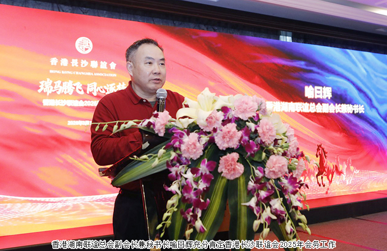 隨后,香港長沙聯(lián)誼會會長胡國安上臺致祝酒辭。他首先代表聯(lián)誼會,向參加春茗會的主禮嘉賓、會員表示歡迎;向長期關(guān)心支持聯(lián)誼會發(fā)展的各級領(lǐng)導(dǎo)、各界嘉賓,以及全體會員、在港湘籍鄉(xiāng)賢表示感謝;對全體會員在香港長沙聯(lián)誼會會務(wù)工作上的默默努力付出致敬。他講到:在港湘籍鄉(xiāng)賢血脈相連、情同手足,聯(lián)誼會始終是大家團(tuán)結(jié)共識、匯聚力量的“溫馨港灣”。“十五五”沖鋒的號角已吹響,新起點的會務(wù)工作我們將圍繞三個方向:一是始終牢記愛國愛港愛家鄉(xiāng)的赤子使命,凝聚起愛國愛港的強(qiáng)大合力。二是搭建兩地交流合作平臺,推動高新科創(chuàng)、現(xiàn)代服貿(mào)、文旅融合、人才交流等領(lǐng)域的對接,助力融入國家發(fā)展大局。三是優(yōu)化會員服務(wù)體系,聚焦需求、豐富活動、深耕公益,以扎實的服務(wù)凝聚鄉(xiāng)心、鄉(xiāng)力。