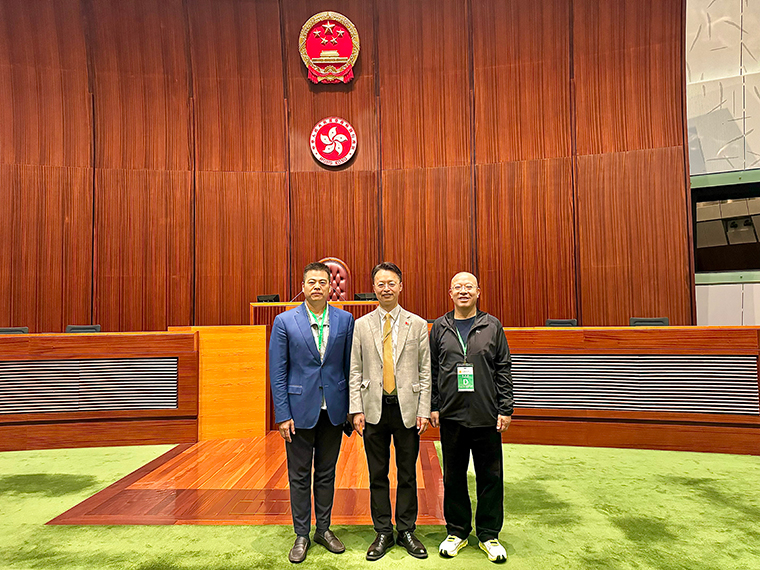 走進(jìn)香港立法會(huì)綜合大樓一樓大廳,首先映入眼簾的是一個(gè)醒目的“立”字,正是香港立法會(huì)制定法律、確立規(guī)則、建立法治秩序的核心要義。香港立法會(huì)洪錦鉉議員在這里熱烈歡迎香港長沙聯(lián)誼會(huì)胡國安會(huì)長一行的到來,并勉勵(lì)大家在凝聚鄉(xiāng)親力量、維護(hù)香港繁榮穩(wěn)定、促進(jìn)湘港兩地經(jīng)貿(mào)文旅合作共贏上繼續(xù)發(fā)揮積極作為。隨后,洪議員同大家一起在專業(yè)導(dǎo)覽員引導(dǎo)下,沉浸式探訪立法機(jī)構(gòu)核心場所,細(xì)致了解香港立法機(jī)構(gòu)的百年發(fā)展歷程、立法會(huì)綜合大樓建設(shè),以及立法會(huì)議員的日常履職與議事工作,近距離感受香港特區(qū)依法施政的良好氛圍。