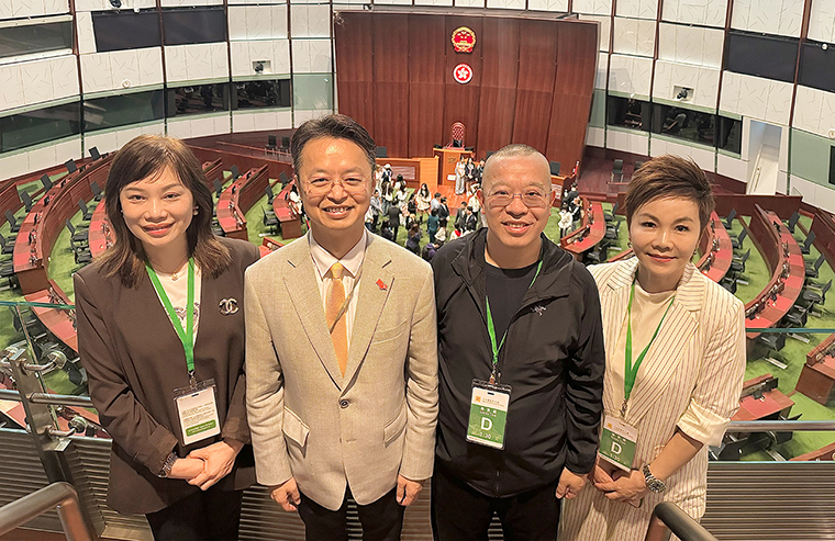 導(dǎo)賞團(tuán)依次參觀了立法會(huì)歷史廊、會(huì)議廳、教育廊、觀景廊及公眾設(shè)施區(qū)域,全面了解香港首座立法機(jī)構(gòu)專用大樓的建設(shè)與功能布局。香港立法會(huì)2008年動(dòng)工興建、2011年正式落成啟用,2025年完成擴(kuò)建工程,由議會(huì)樓、辦公室樓及立法會(huì)廣場、立法會(huì)花園組成,配備了先進(jìn)的會(huì)議表決、實(shí)時(shí)傳譯等專業(yè)設(shè)施,也設(shè)有歷史廊、教育活動(dòng)室等公眾科普空間,實(shí)現(xiàn)議事履職與公眾教育的有機(jī)融合。在會(huì)議廳內(nèi),大家直觀了解議事規(guī)則、席位布局與電子投票系統(tǒng),感受立法會(huì)議事的嚴(yán)謹(jǐn)規(guī)范;教育廊與觀景廊則讓導(dǎo)賞團(tuán)清晰俯瞰議事現(xiàn)場、飽覽維港景致,同時(shí)對比新舊立法會(huì)大樓的變遷,見證香港立法機(jī)構(gòu)與時(shí)俱進(jìn)的發(fā)展步伐。