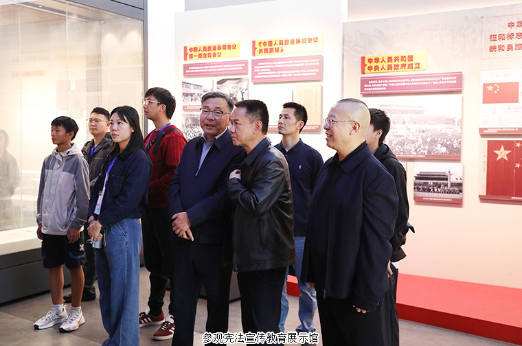 在憲法宣傳教育展示館,團員們依次走進尋憲之路、制憲之為、崇憲之識、行憲之道四大主題展廳,通過史料圖文、互動展陳、情景還原等形式,系統(tǒng)學(xué)習(xí)我國憲法的發(fā)展歷程,深刻領(lǐng)會憲法作為國家根本大法的重要地位,以及依憲治國、依憲執(zhí)政的時代意義。在法治實踐互動區(qū),大家詳細了解雨花區(qū)踐行全過程人民民主的生動實踐、公共法律服務(wù)等民生保障舉措,直觀感受法治建設(shè)為城市發(fā)展與百姓生活帶來的堅實支撐。
