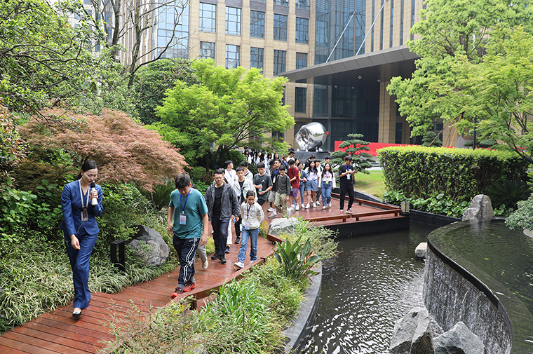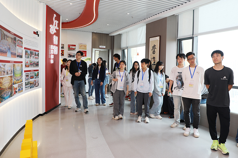交流團一行先后參觀了綠之韻中心數(shù)智化科技展廳與黨建教育陣地。在數(shù)智化科技展廳,學(xué)生們通過沉浸式數(shù)字互動系統(tǒng),直觀感受了“水之道”文化理念與企業(yè)創(chuàng)新發(fā)展相融合的獨特魅力,深入了解了綠之韻在科研創(chuàng)新、產(chǎn)品布局、社會責(zé)任等方面的實踐成果。在黨建教育陣地,交流團詳細聽取了綠之韻以黨建引領(lǐng)企業(yè)發(fā)展的創(chuàng)新做法,特別是“三色、三有、三亮”載體和“一融合、雙培養(yǎng)、三引領(lǐng)、四堅持、五到位、六強化”工作法,給青年學(xué)生們留下了深刻印象。參觀過程中,香港大學(xué)生們對綠之韻將傳統(tǒng)文化、數(shù)字科技與黨建工作有機融合的做法表現(xiàn)出濃厚興趣,不時駐足提問、拍照記錄。一位來自香港的學(xué)生表示:“第一次來到內(nèi)地的民營企業(yè),看到企業(yè)在黨建、文化和社會責(zé)任方面做得這么系統(tǒng)、有特色,很受啟發(fā)。”