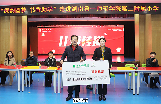 隨后,綠之韻集團(tuán)董事總裁、綠之韻公益基金會理事長勞嘉講話。她首先向辛勤耕耘在教育一線的學(xué)校各位領(lǐng)導(dǎo)和老師致以崇高的敬意。她表示,“關(guān)愛生命、造福人類”是綠之韻一貫秉承的公益理念。十六年來,綠之韻先后捐贈了12所希望學(xué)校,開展了“樹人行動”“綠韻圓夢·書香助學(xué)”“綠+兒童”“暖冬圓夢”“關(guān)愛貧困母親”等一系列慈善公益活動,累計(jì)捐贈款物6700多萬元,用實(shí)際行動承擔(dān)企業(yè)責(zé)任。此次“綠韻圓夢·書香助學(xué)”行動走進(jìn)湖南第一師范學(xué)院第二附屬小學(xué),為學(xué)校教室捐建空調(diào)設(shè)備,既是為了給予學(xué)生以更好地教學(xué)環(huán)境,也是綠之韻對青少年教育事業(yè)關(guān)心和支持的生動體現(xiàn)。她希望,學(xué)生們能懷抱一顆感恩之心,珍惜現(xiàn)在優(yōu)越的讀書環(huán)境,朝著更高的目標(biāo)不懈努力,以優(yōu)異的成績回饋社會。
