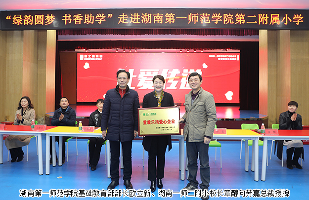 愛心助學(xué)儀式上,湖南一師二附小校長章醇在致辭中感謝了綠之韻愛心企業(yè)與愛心志愿者們對學(xué)校及孩子們的關(guān)愛與幫助。未來,學(xué)校將以飽滿的熱情投入工作,用優(yōu)異的成績回報(bào)愛心企業(yè),回饋社會。湖南第一師范學(xué)院基礎(chǔ)教育部部長歐立新表示,學(xué)校將繼續(xù)堅(jiān)持“以人為本、全面做人、發(fā)展個(gè)性、追求卓越”的辦學(xué)思路,為國家、為社會培養(yǎng)出更多的棟梁之才。湖南第一師范學(xué)院資產(chǎn)處處長彭善瓊說道,“綠韻圓夢·書香助學(xué)”活動的開展為我校教育事業(yè)的發(fā)展提供了極大的支持,營造了濃厚的社會助學(xué)氛圍。