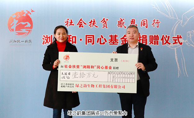 胡均安副總裁在捐贈活動現(xiàn)場表示,在瀏陽這塊紅色沃土,綠之韻生根發(fā)芽、茁壯成長,受到黨和政府以及各級部門的關(guān)懷與支持。“致富思源、富而思進”是綠之韻一直堅持的企業(yè)發(fā)展理念,社會扶貧“瀏陽和·同心基金”的成立為我們參與社會扶貧提供了新的途徑,我們將一如既往地積極承擔企業(yè)社會責任,在企業(yè)健康發(fā)展的同時,努力讓企業(yè)的發(fā)展成果惠及更多需要幫助的人,用行動和愛心與瀏陽這座城市共同成長與發(fā)展!