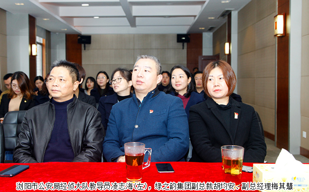 2018年11月13日,瀏陽市公安局法律知識課堂走進綠之韻。瀏陽市公安局經(jīng)偵大隊教導員凌志海,瀏陽市公安局經(jīng)偵大隊主任科員彭建清,綠之韻集團副總裁胡均安,綠之韻集團副總經(jīng)理梅其慧以及集團總部員工共同參加了此次活動。