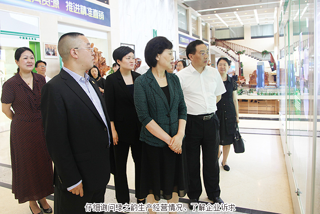 調研過程中,中共湖南省委常委、省委統(tǒng)戰(zhàn)部部長黃蘭香一行先后參觀了綠之韻集團黨建文化教育基地、職工之家以及多功能產品展示廳。在公司多功能產品展示廳,綠之韻“韻宜生”“綠韻蘭茜”“享居”等系列產品引起了各位領導的濃厚興趣。胡國安董事長介紹到,自創(chuàng)立以來,綠之韻堅持“以產品為導向”的發(fā)展理念,所推出的產品都緊緊圍繞綠色、天然和“清調補衡”養(yǎng)生理念,以產、學、研結合為模式先后與多所國家重點大學、科研院所達成戰(zhàn)略合作,聚集了一支以工程院院士、專家教授為骨干的產品研發(fā)團隊。為確保產品品質,綠之韻立足服務三農,以遍布全國的六大生產基地為重要依托,從原料、研發(fā)、生產、物流和銷售等環(huán)節(jié)層層把關,著力打造綠之韻大健康全產業(yè)鏈。公司生產的蘆薈膠、螺旋藻、日用品等系列產品暢銷十多年,依然為消費者津津樂道。”黃蘭香部長一邊聆聽匯報,一邊仔細詢問企業(yè)生產經營情況。