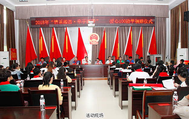 2018年6月11-13日,2018“情系湘西·牽手圓夢(mèng)”愛(ài)心100結(jié)對(duì)幫扶活動(dòng)在龍山縣茨巖塘鎮(zhèn)成功舉行。長(zhǎng)沙團(tuán)市委副書(shū)記康然,湘西團(tuán)州委副書(shū)記張世田,中共龍山縣委常委、組織部部長(zhǎng)石紅梅,中共龍山縣委常委張紅民,長(zhǎng)沙青基會(huì)理事長(zhǎng)、市希望辦主任羊舒麟,湘西州青基會(huì)秘書(shū)長(zhǎng)孫少宣,龍山縣教體局副局長(zhǎng)劉斌蘭,龍山團(tuán)縣委副書(shū)記黃宜超及愛(ài)心企業(yè)代表參加活動(dòng)。綠之韻集團(tuán)黨委書(shū)記劉云受邀參加本次活動(dòng)。