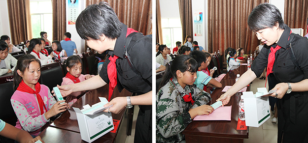 現(xiàn)場(chǎng)捐贈(zèng)儀式由中共龍山縣茨巖塘鎮(zhèn)黨委書(shū)記向懌文主持。儀式開(kāi)始前,少先隊(duì)員們?yōu)檫h(yuǎn)道而來(lái)的嘉賓和愛(ài)心人士敬獻(xiàn)了紅領(lǐng)巾,中共龍山縣委常委、組織部長(zhǎng)石紅梅在講話(huà)中對(duì)各位領(lǐng)導(dǎo)和愛(ài)心人士的到來(lái)表示衷心的感謝。