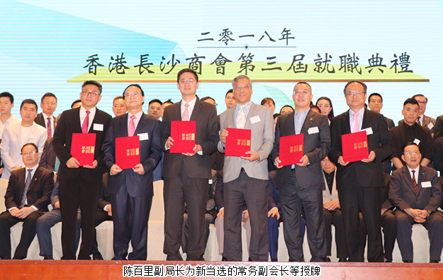 就職典禮上,香港特別行政區(qū)商務(wù)及經(jīng)濟(jì)發(fā)展局副局長(zhǎng)陳百里為新當(dāng)選的常務(wù)副會(huì)長(zhǎng)等授牌并帶領(lǐng)宣誓,現(xiàn)任全體執(zhí)行會(huì)長(zhǎng)、常務(wù)副會(huì)長(zhǎng)、副會(huì)長(zhǎng)舉行了宣誓儀式,在國(guó)旗前莊嚴(yán)宣讀了任職誓詞。馬介欽會(huì)長(zhǎng)表示,香港長(zhǎng)沙商會(huì)自2012年成立至今已近6年,現(xiàn)有名譽(yù)會(huì)長(zhǎng)、會(huì)長(zhǎng)、執(zhí)行會(huì)長(zhǎng)、副會(huì)長(zhǎng)、會(huì)董共約200多人,成員包括多位全國(guó)政協(xié)委員,人大代表,香港在長(zhǎng)沙、湖南重大投資企業(yè)代表及多位長(zhǎng)沙、湖南籍貫內(nèi)地知名企業(yè)家。商會(huì)一直和香港政府、貿(mào)發(fā)局、各大商會(huì)、外國(guó)駐港、駐國(guó)內(nèi)地方領(lǐng)事有良好關(guān)系,并擴(kuò)闊了香港和長(zhǎng)沙、湖南兩地企業(yè)家之交流和合作機(jī)遇,先后協(xié)調(diào)香港多個(gè)商會(huì)和企業(yè)家等到訪長(zhǎng)沙及湖南其他各地。商會(huì)將始終以關(guān)心長(zhǎng)沙經(jīng)濟(jì)社會(huì)建設(shè),關(guān)注長(zhǎng)沙發(fā)展商機(jī);建立已在或有意在湖南投資興業(yè)的香港工、商界人士的園地;搭建溝通長(zhǎng)沙與香港兩地經(jīng)貿(mào)交流合作的暢通橋梁;建立長(zhǎng)沙與香港兩地企業(yè)家、社會(huì)精英的交流、聯(lián)誼平臺(tái);在海外推介長(zhǎng)沙、宣傳及協(xié)助長(zhǎng)沙招商引資工作為商會(huì)宗旨,為香港長(zhǎng)沙兩地經(jīng)濟(jì)的發(fā)展創(chuàng)造更多的機(jī)遇與更好的平臺(tái)。