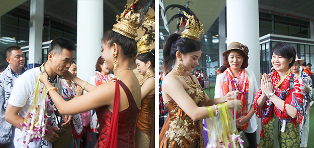一來(lái)到普吉島,綠之韻家人們就充分感受到了這個(gè)熱帶島嶼的熱情,身著民族服飾的泰國(guó)少女帶著“薩瓦迪卡”的甜美聲線為大家獻(xiàn)上美麗的花環(huán);威風(fēng)凜凜的泰國(guó)警察駕駛著警車(chē)為綠之韻專列車(chē)隊(duì)開(kāi)道,一路護(hù)送;《世界日?qǐng)?bào)》對(duì)2018綠之韻繽紛普吉島之旅予以整版報(bào)道……