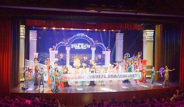 演出最后,旅行團(tuán)還為家人們準(zhǔn)備了一個(gè)特別的驚喜。在演員們紛紛上臺(tái)謝幕時(shí),舞臺(tái)上拉出了“帶著夢(mèng)想去旅行——2018綠之韻繽紛普吉島旅行嘉年華”的橫幅,綠之韻家人們紛紛被這一榮耀專屬時(shí)刻所感動(dòng),掌聲、尖叫聲雷動(dòng)。