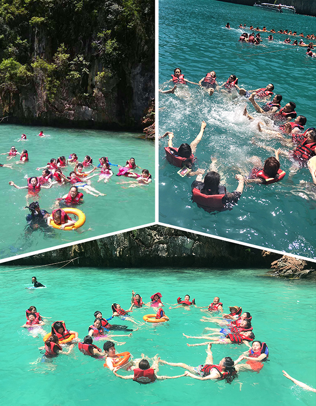 泰國(guó)普吉島被譽(yù)為安達(dá)曼海的明珠,有著“珍寶島”、“金銀島”的美稱。在這六天的繽紛之旅中綠之韻營(yíng)銷精英們充分感受了普吉島芳香馥郁、通體舒暢的泰式精油SPA,觀看了精彩紛呈的西蒙人妖秀,體驗(yàn)了海底浮潛、海上降落傘、摩托艇等豐富的海上項(xiàng)目,參加了盛大的潑水狂歡……